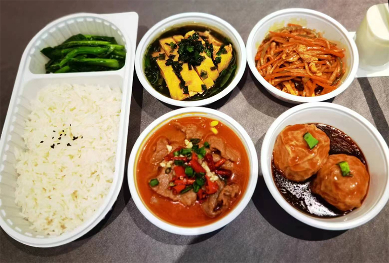 整套菜品保持在餐标的标准克数以上,对于食量大的客户主食可另外添加